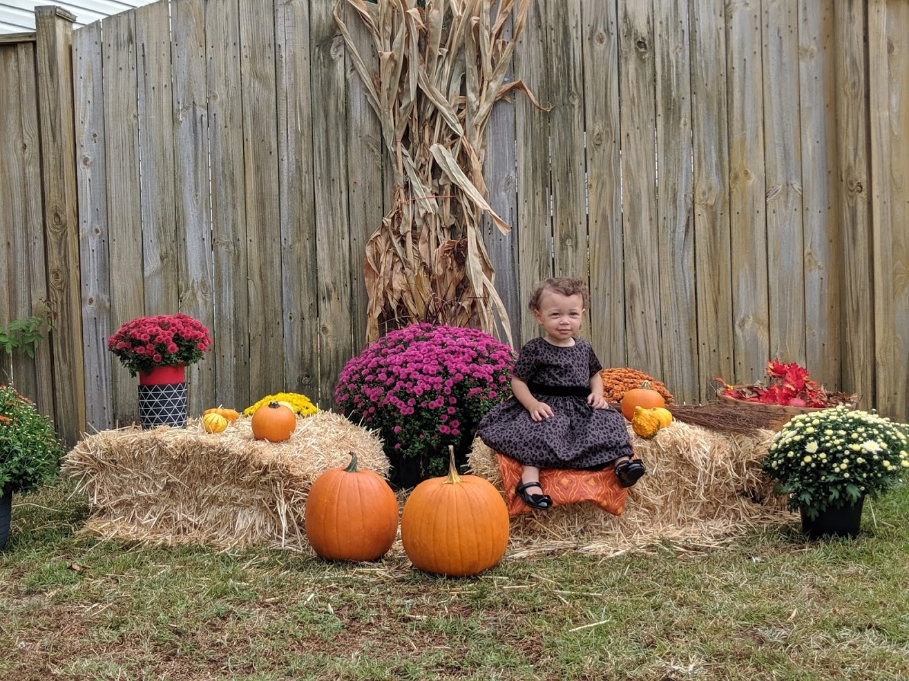 I couldn’t write an orange post without mentioning pumpkins! Last fall we had a few pumpkins set up on hay bales and flowers. They lasted until it was time to put out the Christmas decorations. We cut one of the pumpkins open, dried the seeds and Lia planted them this year. She checks her garden every time she visits us and now has little pumpkins growing! Hopefully she will be picking pumpkins for our fall display this year. Can’t forget the beautiful orange mums we had in our display last year. Lia would water them every morning with her jammies and boots on!