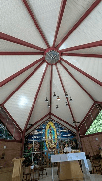 I spent the past two days in the mountains for Spiritual Sunday and went to Our Lady of Guadalupe Mission Catholic church in Cherokee to celebrate Rich’s and my 58th anniversary, as we have done in the past. Mass was Saturday evening and it’s a small church but beautiful. It’s built like an octagon with a gorgeous stained glass wall of Lady Guadalupe behind the alter and the ceiling looks like a huge star. When I went last year, the first anniversary on my own, the parishioners were so kind and comforting. One lady especially stood out and yesterday she was there again. After Mass I went up to her to say hi not thinking she would remember me but as soon as I walked over, she was so excited to see me back. She remembered me for a year ago. We talked a bit and I apologized because I forgot her name but remembered her face. As soon as she said “Mary Ellen” I remembered because she told me, Mary Ellen as in the Walton’s! We hugged and as I walked to my car she waved from the parking lot and I said, “I’ll see you next time Mary Ellen from the Walton’s!”