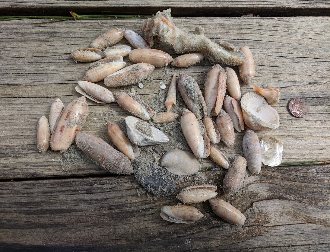 Olive Shell (with penny I also found on the beach!)