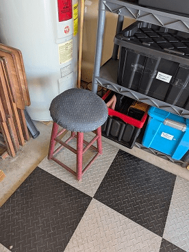 This past weekend I dug my heels in the garage and like a white tornado I got it decluttered and organized. I was determined to get it completed before my daughter comes down next Sunday. I had so much stuff from when we closed our shop, things from Alex and Lia when they moved to Indiana and just STUFF that was time to let it go. So much went to free sites, lots went to donations and the rest went to the recycling center. But the old stool has to