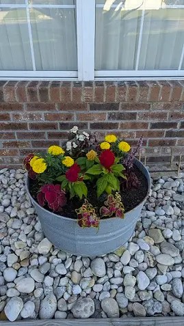 It took about a month for the flowers to fill out but I love how I repurposed a galvanized bucket into a beautiful flower pot at the front entrance of my house.